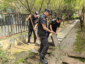 整個(gè)換管過(guò)程中,保安團(tuán)隊(duì)始終堅(jiān)守現(xiàn)場(chǎng),協(xié)助維護(hù)秩序、清理施工廢料,雙方默契配合。經(jīng)過(guò)近 3 小時(shí)的緊張搶修,新管道安裝調(diào)試完成,對(duì)塌陷區(qū)域進(jìn)行泥土回填、平整地面,并清理干凈現(xiàn)場(chǎng)雜物。