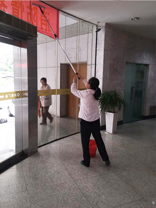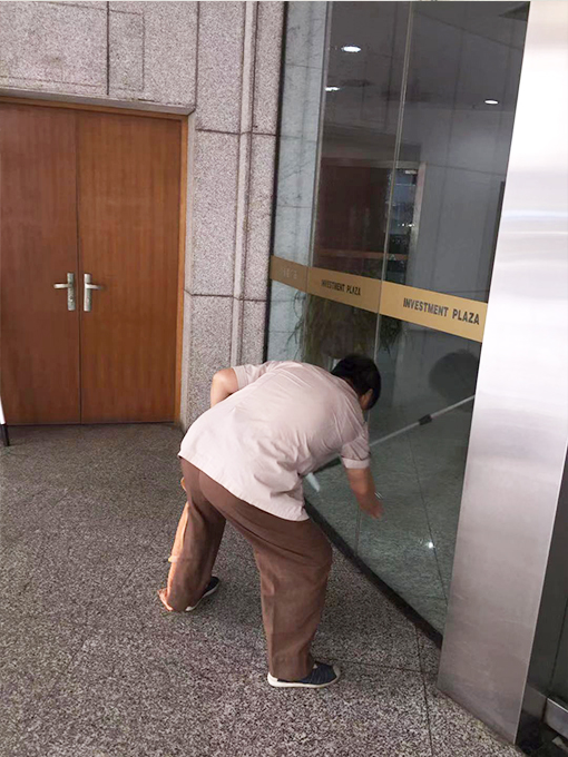 常州的投資廣場是建于20世紀(jì)90年代的老大樓,曾經(jīng)也是常州的地表建筑也是老常州人的驕傲。時間飛速時代更迭,周圍的高樓聳立,投資廣場沒有了昔日的光芒。但是在投資廣場項目部所有的工作人員相信它可以煥發(fā)新的生機(jī)。為了讓每位業(yè)主和來往的客戶都有一個舒適的工作和學(xué)習(xí)的環(huán)境,每天一大早投資廣場保潔部的工作人員對大樓大廳的落地玻璃進(jìn)行清潔。由于是大面積的落地玻璃,一個人難以擦拭,她們就兩兩協(xié)助,一個人拿玻璃擦在里面進(jìn)行第一遍的清洗,另外一個人在拿玻璃刮在輕輕的刮擦。由于腰彎上彎下,不一會就累的夠嗆,連腰都直不起來。終于在業(yè)主和客戶上班之前大廳玻璃擦完。業(yè)主到達(dá)以后看見明亮潔凈的大廳,一天都會有好心情。投資廣場項目部所有的員工堅信只要付出就會有回報。老大樓也會煥發(fā)新的生機(jī),更加和諧的為業(yè)主服務(wù)。