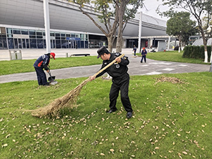視察前夕,保潔部便啟動了“全域清潔”專項(xiàng)計(jì)劃:針對北廣場綠化帶、步行通道、候車區(qū)域等重點(diǎn)區(qū)域,增派人手開展落葉清掃、地面沖洗、設(shè)施擦拭等工作。當(dāng)天,保潔人員著重對廣場草坪內(nèi)的落葉、步道縫隙的雜物進(jìn)行 “拉網(wǎng)式” 清理 —— 有的俯身清掃草坪角落的殘葉,有的配合清運(yùn)堆積垃圾,連座椅、欄桿等細(xì)節(jié)處也逐一擦拭除塵,F(xiàn)場可見,安保人員也主動加入清潔隊(duì)伍,與保潔人員協(xié)同配合,確保每一處區(qū)域都干凈整潔。