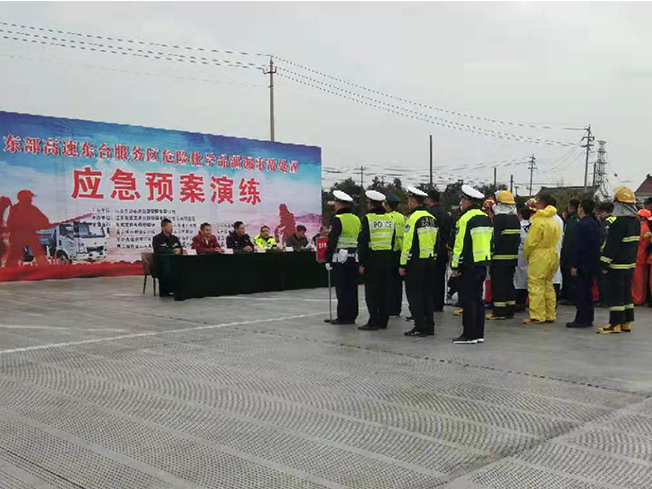 為積極貫徹江蘇省交通控股公司開(kāi)展高速服務(wù)區(qū)“應(yīng)急預(yù)案演練月”活動(dòng)的相關(guān)要求,進(jìn)一步規(guī)范服務(wù)區(qū)應(yīng)急預(yù)案管理體系,提升服務(wù)區(qū)對(duì)突發(fā)事件應(yīng)急處置能力,11月26日,東臺(tái)服務(wù)區(qū)聯(lián)合鹽通管理處、派出所、交警、路政、消防隊(duì)、高速清障隊(duì)、東臺(tái)人民醫(yī)院及服務(wù)區(qū)各承租方等單位在東臺(tái)服務(wù)區(qū)共同舉辦了“危險(xiǎn)化學(xué)品泄露事故應(yīng)急預(yù)案演練活動(dòng)”。東部高速副總經(jīng)理吳海翔、各部門管理處相關(guān)負(fù)責(zé)人以及東部高速全線各服務(wù)區(qū)管理人員、各物業(yè)公司負(fù)責(zé)人、全線物業(yè)公司部分保安參加了觀摩。