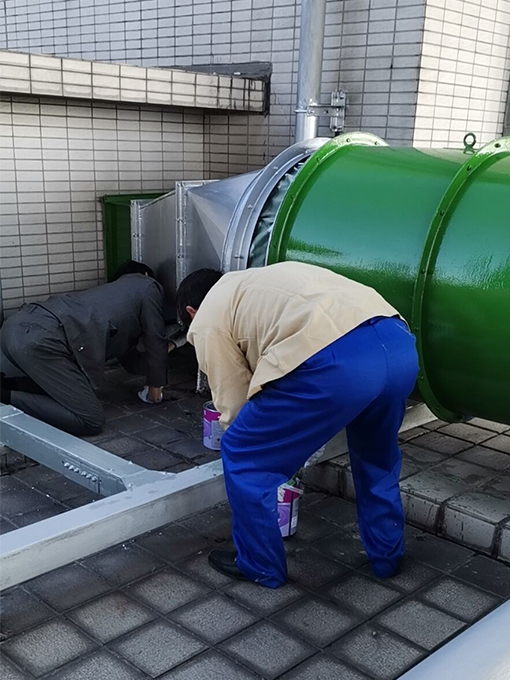 一大早,物業(yè)管理部帶著幾名員工扛著人字梯拎著一桶桶的防銹漆、銀粉漆爬到頂樓平臺上,對所有的機(jī)柜、消防管道、二次供水管道、兩臺增風(fēng)機(jī)、六臺排煙機(jī)、空調(diào)補(bǔ)水箱等等大型設(shè)備油漆一遍,給這些鋼鐵巨人換上一身新衣服讓他們好好地過個冬,我們的員工在頂著高樓的強(qiáng)風(fēng)、刺鼻的油漆味一遍一遍對鋼鐵俠們進(jìn)行油漆。這項(xiàng)工作也得到了甲方的認(rèn)可,甲方也對我們高正物業(yè)有著高度評價(jià)。