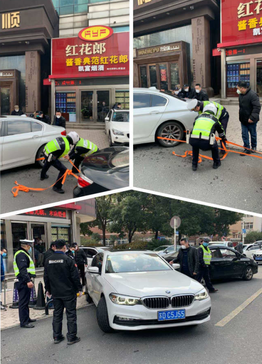 3月16日早高峰時段,一輛白色寶馬車因?yàn)楣收峡ㄔ诹藝鷻谏希略诹穗x投資廣場停車場入口不遠(yuǎn)處的路中間,導(dǎo)致業(yè)主的車輛無法正常進(jìn)入停車場。項(xiàng)目部陶經(jīng)理在發(fā)現(xiàn)此情況后,盡管馬路不在物業(yè)管理范圍,為了業(yè)主能準(zhǔn)時上崗,她積極組織輪崗的保安以及工程部師傅們,協(xié)助趕來的交警一起挪車。經(jīng)過大家共同的努力下,用時30分鐘,終于將車子成功挪出。