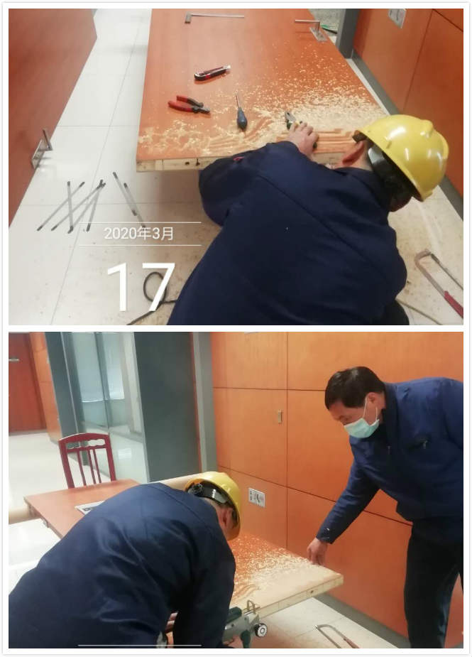 春光明媚,水務(wù)大樓物業(yè)管理部接到甲方通知需要在22樓裝修出一個(gè)健身房。接到任務(wù)后我們的維修師傅擼起袖子說(shuō)干就干,戴好口罩,背起工具包就上了22樓開(kāi)始大整改。辦公室里面全部清掃干凈,垃圾清理掉,門的大小發(fā)現(xiàn)不合適,我們的維修師傅一點(diǎn)一點(diǎn)的量尺寸,拉起電線把多余的門邊鋸掉,刨光滑,以防刮到手。經(jīng)過(guò)大家一下午的努力,終于我們的健身房改造成功!目前只需要等待器材的引進(jìn),就可以每日打卡健身了。
