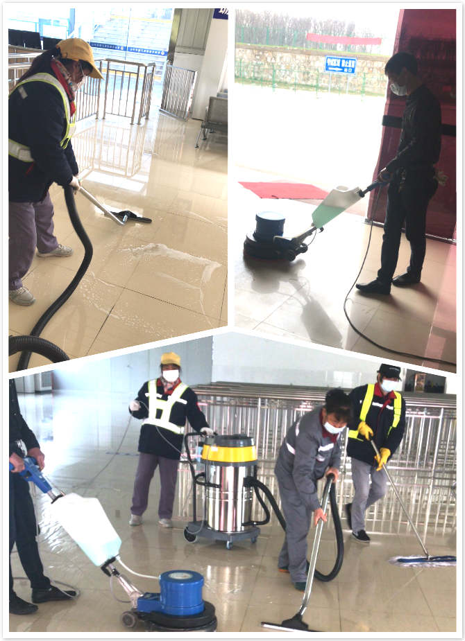 本該是人流密集時,卻空無一人。因新冠疫情的蔓延,溧陽駕培中心暫停開放,場內(nèi)空曠無人,卻給物業(yè)爭取了時間,把平時打掃不到的地方進行徹底的清理。之前人來人往使得候考室地面變臟、磨損,有些污垢不易被清洗,有些掉入縫中的泥垢無法清理到,為此項目上把新配備的洗地機及吸塵器投入了使用。