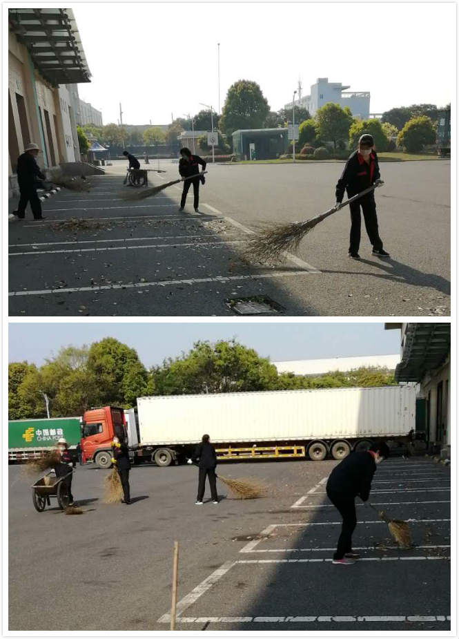 首先,大家找來了垃圾車、簸箕、掃把等清潔工具,就緒后,大家開始動手把所有的樹葉掃到一起,整堆、裝袋,最后進行清運。整個過程井然有序,雖然花了將近兩個小時,保潔員們臉上掛滿了汗水,但是,當(dāng)看著煙草物流配送中心的外圍廣場,在大家共同的努力下,落葉全部清掃完畢,看著清潔的地面時,所有人員臉上都露出了欣慰的笑容。