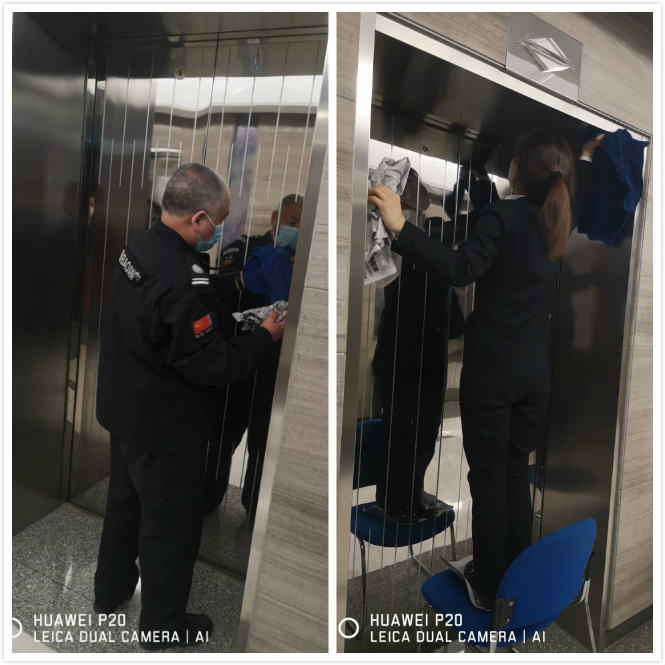 2020年4月14日,今天真的是風(fēng)和日麗,氣溫感覺(jué)不錯(cuò),所以高正集團(tuán)水務(wù)大廈項(xiàng)目部物業(yè)人員準(zhǔn)備利用中午的休息時(shí)間,和保安一起對(duì)電梯轎門(mén)進(jìn)行清潔工作。