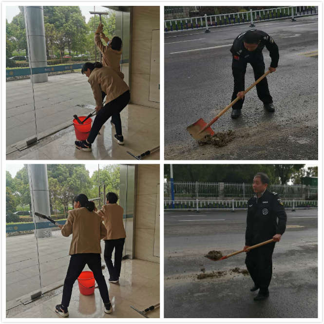 這個月大樓門口由于渣土車來回載運(yùn),路面上全都是土塊,我們的保安人員都主動去用鐵鏟鏟除,這些看似不起眼的事情,我們物業(yè)人員都會默默的完成,還有大樓玻璃門需要經(jīng)常搽刮,保潔阿姨們都會互相幫忙,每個樓道的地面衛(wèi)生都拖得跟一面鏡子似的。