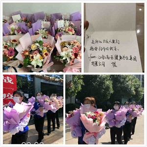 5月12日,國際護士節(jié)到了,高正集團武漢161醫(yī)院項目部的項目管理人員一大早就來到醫(yī)院,忙著為中部戰(zhàn)區(qū)總醫(yī)院漢口院區(qū)各科室的護士們準備一束束美麗的鮮花,給她們送上節(jié)日的祝福,祝她們節(jié)日快樂,向所有的白衣天使致敬!收到漂亮的鮮花,穿著厚厚防護服的護士姐姐們都開心的笑了。