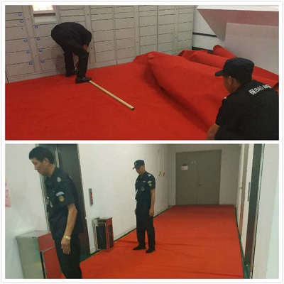 看到這個(gè)情形,高正集團(tuán)水務(wù)大廈項(xiàng)目部管理人員立即繃起了緊張的玄,防汛任務(wù)就在眼前,地下車庫絕不能出現(xiàn)水漫金山的現(xiàn)象。管理部立即排查地下車庫南北出入口處的水坑下水是否流暢,是否有積水。經(jīng)過仔細(xì)查看,由于水務(wù)的設(shè)施還是比較完善的,基本沒有造成下水不暢的問題,但是地下庫的油漆地面返潮造成路面打滑,對(duì)行人造成安全隱患。于是管理員們立即找來地毯,量好電梯通道的尺寸,把地下庫的電梯通道用紅色地毯全部鋪好,這樣就大大的降低了甲方上班人員路滑摔倒的危險(xiǎn)系數(shù),火紅的地毯不僅美觀而且安全。
