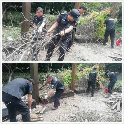水務(wù)大廈的涼亭上次被拆掉之后甲方一直沒有重新施工,涼亭上有很多纏繞的藤狀植物被扯下來之后就一直堆放在涼亭舊址那里,看上去實在不美觀。這個不屬于生活垃圾,需要專門的部門才能運走,只能等甲方聯(lián)系專人清理。為了不讓那些枯樹枝暴露在大庭廣眾之下,高正集團水務(wù)大廈項目部組織員工把散落在地面的樹枝清理到角落里,一來不影響美觀,二來可以方便拖運部門清理。于是我們的保安接到任務(wù)帶上手套開始大干起來,不一會就把散落的樹枝堆成一堆。