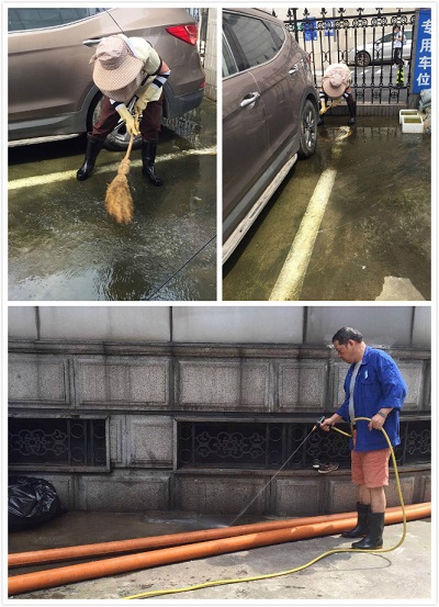 首先安排保潔部負(fù)責(zé)清理青苔,先噴灑專業(yè)的青苔去除劑,等青苔溶解后再清掃。工程部則配合使用水槍沖洗路面,并在相應(yīng)的路面上放好警示牌,提醒行人注意路面濕滑?紤]到窨井排出的水多少都有點(diǎn)異味,天氣炎熱,容易滋生蚊蠅害蟲(chóng)。所以項(xiàng)目部安排保潔每天對(duì)排水口進(jìn)行消毒,減少異味,同時(shí)對(duì)容易積水的路面,經(jīng)常清掃,以免再次滋生青苔。