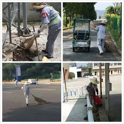 由于駕校場地綠化面積較大,場地內的綠化樹木和植物的枯黃樹葉布滿了道路、草坪和一些清掃困難的淌水溝、角落,給保潔人員增加了很大的工作量。在清掃的過程中,還不時會有樹葉飄落,有時剛把落葉掃到一起,突然吹過一陣大風,樹葉便都會被吹得到處都是,因此保潔人員只能邊掃邊裝進簸箕,用掃帚壓著,裝進專門用來放樹葉的垃圾袋,防止被吹走,像一些清掃困難淌水溝,用掃帚又掃不到,掃不出的地方,保潔人員只能不顧臟的用手去抓樹葉。