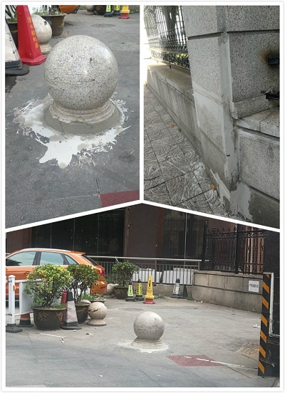 高正集團投資廣場項目部在發(fā)現(xiàn)這一不文明行為之后,立即安排工程部師傅將石球固定起來,既確保了輔樓地下室入口處的規(guī)范停車,也阻止了那些隨意亂停車的不文明行為。工程部師傅們還發(fā)現(xiàn)廣場圍欄外墻的石材有些剝落了,就利用剩余的水泥,將石材修補固定住。