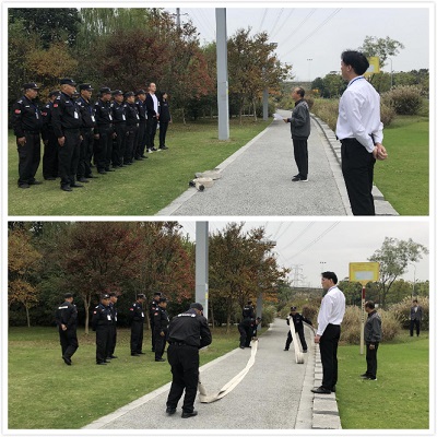 本次訓練主要有消防水帶的使用及回收、移動水泵的啟動兩個訓練內(nèi)容。訓練過程中,安全保衛(wèi)部杭經(jīng)理與保安主管劉源親身演示主要動作,手把手對員工的姿勢、技巧進行了認真指導,及時糾正大家的錯誤動作。整個過程井然有序,每個參訓人員都努力把動作做標準、做到位。
